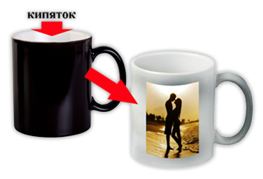 Кружка хамелеон • кружка тёмного цвета, при нагревании проявляется изображение; • ёмкость: 330 мл.; • размер наносимого изображения 200х90 мм.; • бесплатный макет; • возможно добавление надписи; |